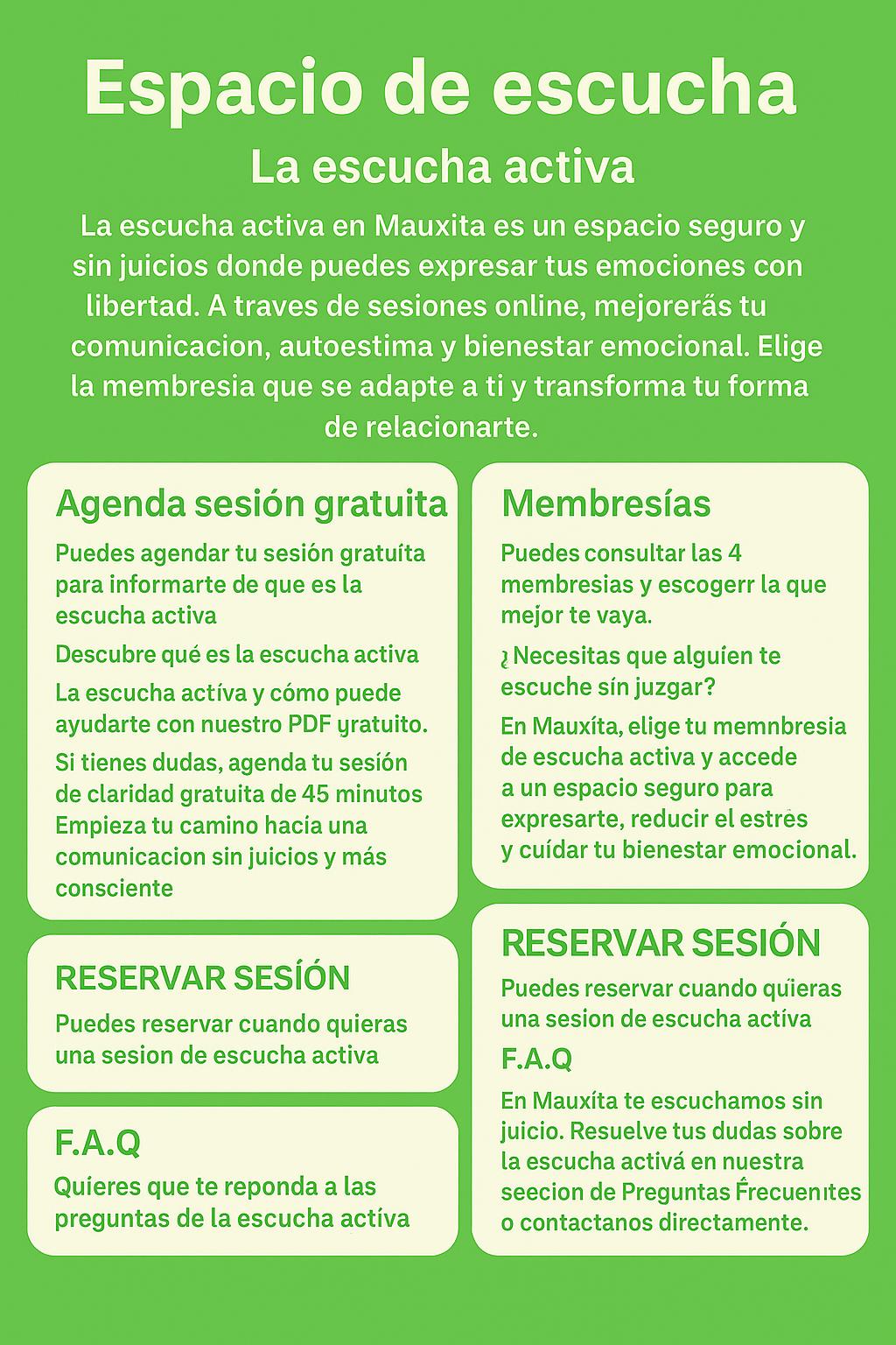 ¿Tienes un problema, bloqueo o simplemente necesitas hablar? En Mauxita te escuchamos con atención y sin juicios. Aquí puedes expresarte libremente y encontrar claridad.